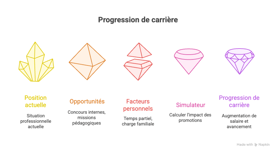 On n’oublie pas non plus ce qui dépend de la vie personnelle : temps partiel, charge familiale ou situation de handicap, tout entre en ligne de compte, et apporte son lot de calculs et de démarches. Qui parmi vous a déjà découvert, grâce au simulateur du ministère, qu’une promotion tardive changeait tout ?